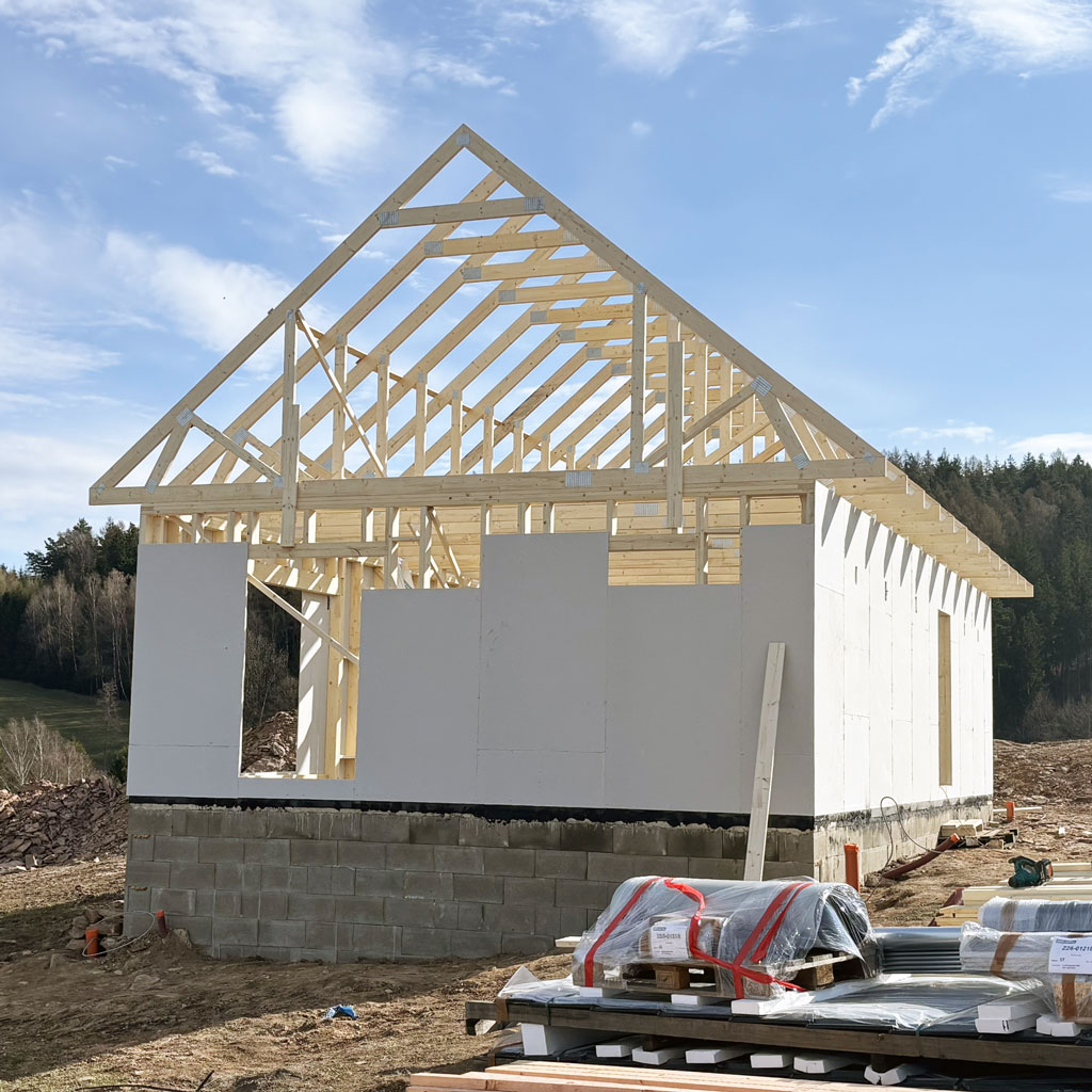 Bungalov 1++ – Nekoř – 2026 Bungalov 1++ – Nekoř – 2026 Dispozice domu je 3+kk na zastavěné ploše 87,8 m2. zpět